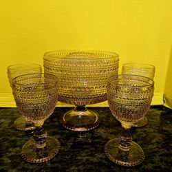 Vintage Pirl Pink Glass LE Smith Hobnail Design Fruit Footed Bowl &Four Stemmed Cups $75Boca Raton, FL