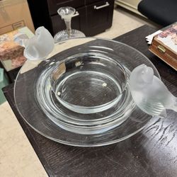 Vintage Rene Lalique "Deux Moineaux Moqueurs" (Two Mocking Sparrows) centerpiece bowl is crafted from clear and frosted crystal - 15” x 12” $250Fort Lauderdale, FL