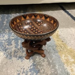 Old Wooden Hand-Carved Bowl With Beautiful Design and Bowl Stand$20Pembroke Pines, FL