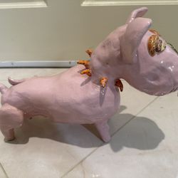 Hand-Painted Pink Ceramic Dog Figurine - Whimsical Folk Art Style$45Boca Raton, FL