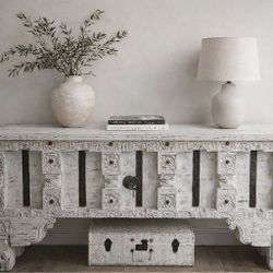 Vintage Hand-Carved Indian Wood Console — Artisan Statement PieceA rare hand-carved vintage Indian wood console, featuring intricate architectural rel$1,350Miami, FL
