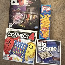 Board Games Clue, Connect 4, Big Boggle, Jenga $20Hialeah, FL