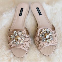 Dolce & Gabbana Bianca Crystal Lace Beige Sandals Shoes Size 7$300Aventura, FL