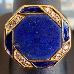 14k solid yellow gold Blue Lapis Lazuli stone 0.15CTW Natural Diamond Enameled ring sz11$3,050Boca Raton, FL