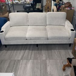 White Beige 3 Seater Cozy Chenille Like Couch Sofa with Cup Holders and Side Pouch$400Fort Lauderdale, FL