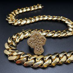 14k gold plated Cuban Link chain pendant and ring$320Hialeah, FL