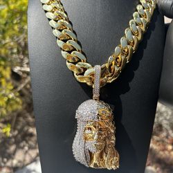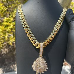 Miami Cuban Link Chain & Native Pendant Gold Plated Set 14mm$240North Lauderdale, FL