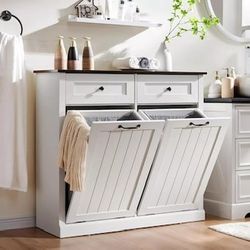 New-Double Tilt Out Laundry Hamper Cabinet Farmhouse Laundry Storage Cabinet with Drawers Wood Hidden Trash Can Cabinet or Laundry Cabinet for Bathroo$120Oakland Park, FL