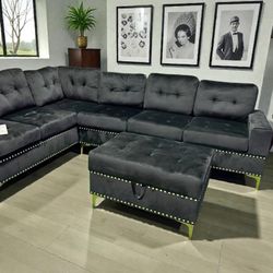 Black Velvet Sectional Sofa With Storage Ottoman $845Oakland Park, FL