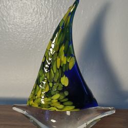 Art Glass Sailboat Cobalt Blue Yellow Splatter Sail Ocean Nautical Paperweight$22Miami, FL