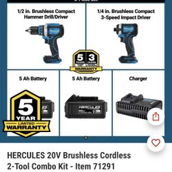 Hercules Drill And Impact Set With Two Battery And Charger $125Miami, FL