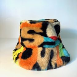 Multicolor Letter Print Faux Fur Bucket Hat $13Daytona Beach, FL