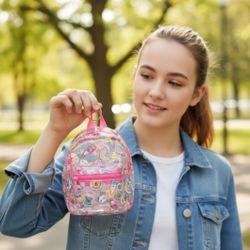 Claire's Sweet Treats & Friendly Critters 5" Clear Mini Backpack With Keychain. Very Good Condition. The image shows the "Sweet Treats & Friendly Crit$10South Daytona, FL