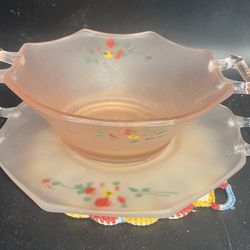 Vintage Pink Satin Frosted Depression Glass Bowl/Saucer (5.5/6.75”)$30Palm Coast, FL