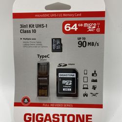 MicroSDXC Memory Card 64 GB (3 in 1) Gigastone UHS-1 U1 $25Pompano Beach, FL