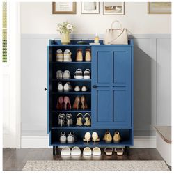 NEW-Shoe Cabinet with Cross Molding Doors, 6-Tier Shoe Storage Cabinet with 3 Adjustable Shelves and Metal Legs, 45'' Tall Shoes Rack Organizer Cabine$100Oakland Park, FL