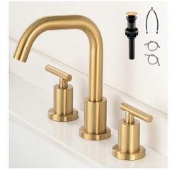 Brushed Gold Bathroom Faucet for Sink 3 Hole, 8 inch Widespread Bathroom Faucets | Brass Gold Vanity Faucets with 360° Swivel Spout 2 Handle Gold Sink$30Boca Raton, FL