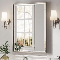 NEW-Brushed Nickel Bathroom Mirror, 24x32 Inch Beveled Framed Bathroom Mirror Anti-Rust, Brushed Nickel Metal Frame Bathroom Vanity Mirror for Wall, V$45Fort Lauderdale, FL