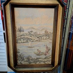 Vintage " FISHING at the LAKE" Framed Italian Tapestry 31"×22"$49Boca Raton, FL