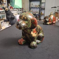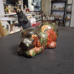 Decoupage Floral Puppy Dog Crouching Down Glazed Porcelain By Joan Baker Designs, Whimsical Puppy Hand-painted W/Felt On Bottom Vintage 90's $18Fort Lauderdale, FL