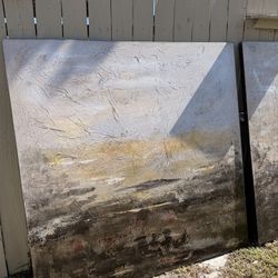 TWO - large Canvas Abstract Painting Neutral White Beige Gold Leaf Marbled Coast 47inX 47in$125Lake Worth, FL