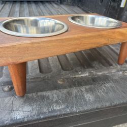 Rustic Wooden Elevated Dog or Cat Feeding Bowl Stand with Two Stainless Steel Bowls! 17x10x5in$20West Palm Beach, FL