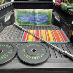 PAIR OF OLYMPIC BUMPER PLATES & 6 FOOT OLYMPIC BARBELL BAR$110Deerfield Beach, FL