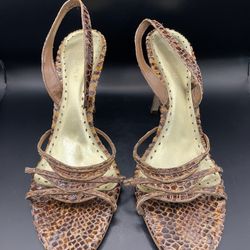 BCBGIRLS Brown Snakeskin Embossed Leather Slingback Heels Sandals Size 10$28Boca Raton, FL