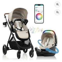 Evenflo Shyft Intuiti+ Travel System Featuring Revolve180 LiteMax NXT Preemie and Infant Car Seat with SensorySoothe and Green & Gentle (Champagne)$600Biscayne Park, FL