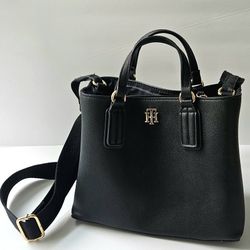 Tommy Hilfiger Black Pebbled Leather Satchel 10” Gold Logo Crossbody$25Pompano Beach, FL