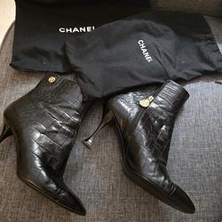 CHANEL black crocodile-embossed leather ankle boots Size US 8.5, EUR 40$375Oakland Park, FL