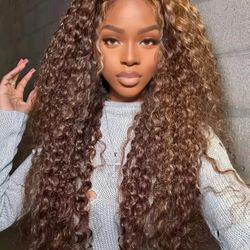 Deep Wave Ombre 250 Density 4B Highlight 30-40 Inch Brown Curly HD Lace Front Wig 13x6 Water Wave Human Hair Wig$500Fort Lauderdale, FL