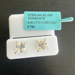 4.00 CTW Asscher Cut Moissanite Stud Earrings Sterling Silver VVS Diamond Tester Pass$150Fort Lauderdale, FL