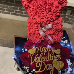 Valentines Rose Bouquet With Lights And Rose Bear $70Fort Lauderdale, FL