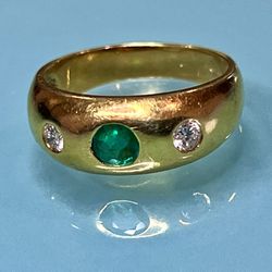 💚 Stunning 18K Yellow Gold Diamond & Emerald Three-Stone Ring ✨$1,250Boca Raton, FL