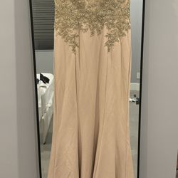 Nude/ Beige Body on Flare Long Dress Bridesmaid/sweet 16/quince Fancy Dress With Detail. Off The Shoulder$40Pompano Beach, FL