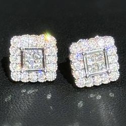 14K White Gold 1.5CTW Natural Diamond Studs Princess & Round Cut Square Shape Earrings$999Boca Raton, FL