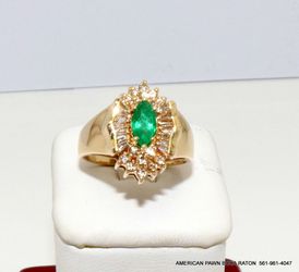 Marquise Emerald & Diamond Accents Ring Solid 14K Yellow Gold Size 7 Natural Emerald -$880Boca Raton, FL