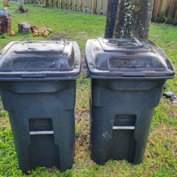 64 Gallon Black Rolling Outdoor Garbage/Trash Can with Wheels and Attached Lid
