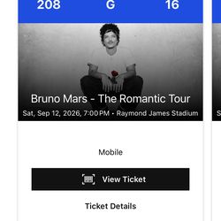 Bruno Mars floor tickets - 9/19 Concert$1,250Pompano Beach, FL