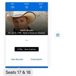 Garth Brook Tickets Charlotte NC July 15, 2022$400Pompano Beach, FL