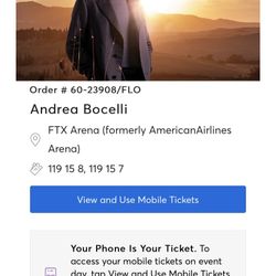 Andrea Bocelli 12/18/21 Miami - 2 tickets $525Boca Raton, FL
