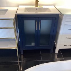 28” Navy Blue Single Sink Tempered Glass Vanity With Porcelain Top READY FOR PICK UP!$699Boca Raton, FL