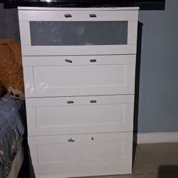 White chest of drawers with 4 drawers, one handle is missing and it has a scratch.$85Pompano Beach, FL
