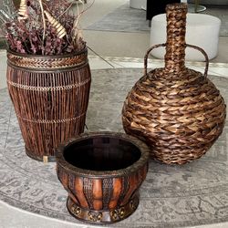 Lot of 3 Seagrass Bamboo Rattan Decorative Floor Vases and Planter$40Wellington, FL