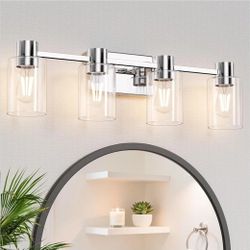 AURYNIX 4-Light Bathroom Vanity Light Fixture, Modern Chrome Lights with Clear Glass Shade, 26-inch Wall Sconce for Bathroom, Vanity, Living Room $30Lake Worth, FL