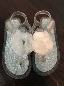 Girls dress up silver glitter rose jelly sandals size 10$5FL, US