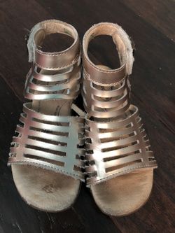 Girls stride rite leather memory foam gold gladiator sandals size 10 W$10FL, US