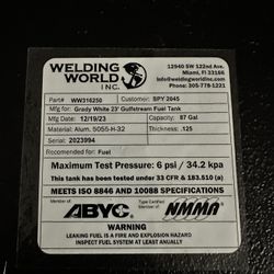 Brand New Welding World 87 Gallon Marine Fuel Tank$800Fort Lauderdale, FL