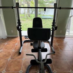 Gold’s Gym Bench press set w Barbell rack and leg developer Adjustable incline (no Weights) Just Bar, Bench And Rack$120Pompano Beach, FL